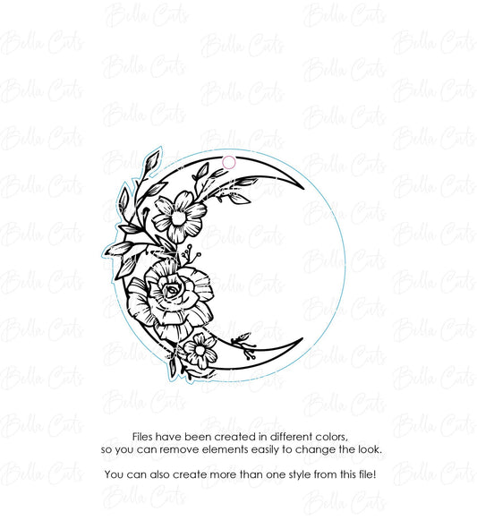 Floral Moon Laser Cut Engraved Pendant, Digital File Download, SVG DXF, Glowforge Ready, Commercial Use #137