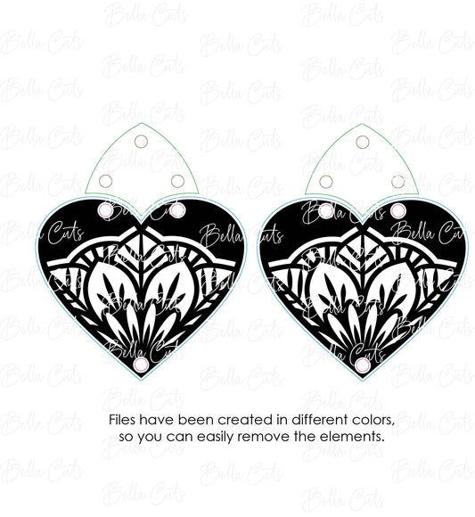 Mandala Heart Earring Laser Cut Engraved Earrings, Acrylic Laser Digital File Download, SVG DXF, Glowforge Ready, Commercial Use #323