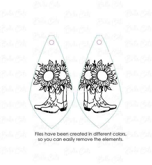 Boot Western Sunflower laser cut dangle earring SVG file for wood or acrylic #309