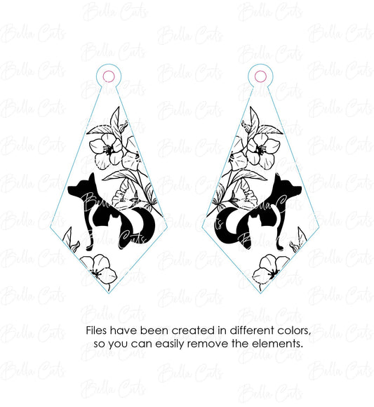 Dog Cat Floral Earring, Laser Cut Engraved Earrings, Digital File Download, SVG DXF, Glowforge Ready, Commercial Use #271
