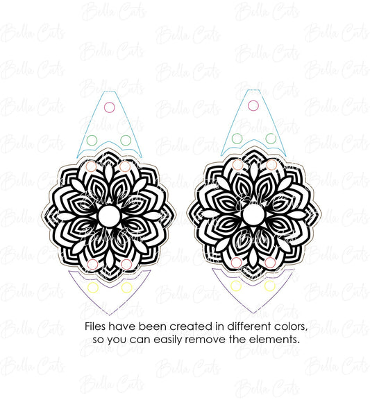 Mandala Floral Earring Laser Cut Engraved Earrings, Acrylic Laser Digital File Download, SVG DXF, Glowforge Ready, Commercial Use #281