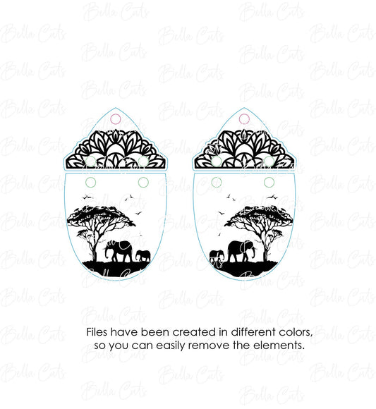 Elephant Floral Cut Engraved Earrings, Digital File Download, SVG DXF, Glowforge Ready, Commercial Use #226