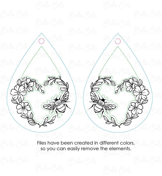 Floral Bee laser cut earring SVG file for wood or acrylic #246