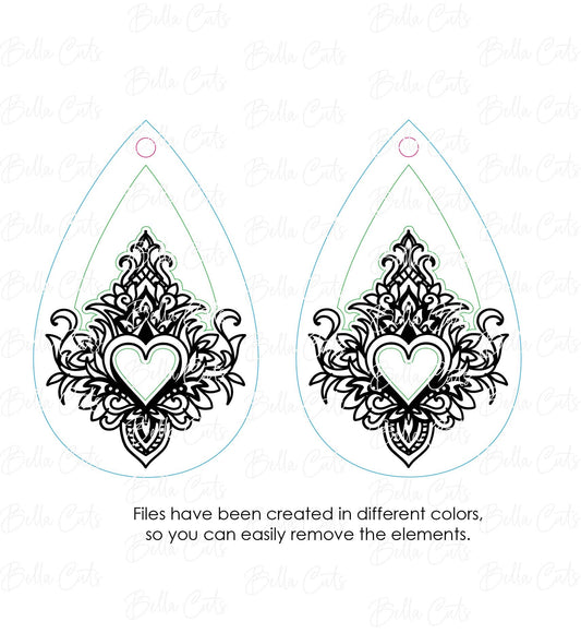 Mandala Heart Cut Engraved Earrings, Digital File Download, SVG DXF, Glowforge Ready, Commercial Use #253
