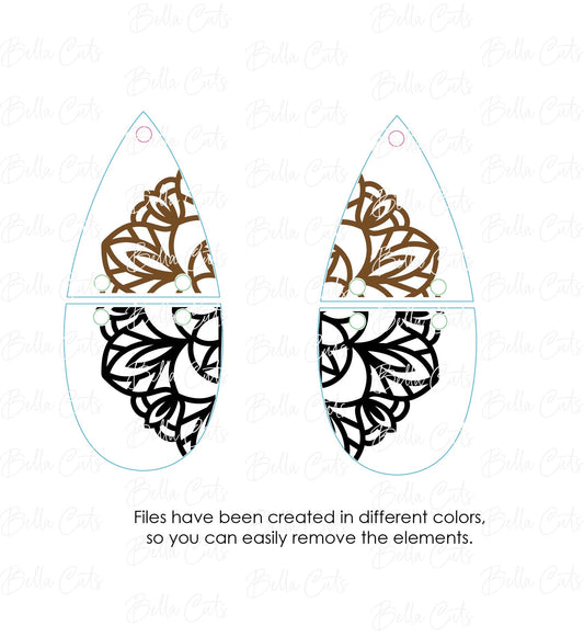Mandala drop Cut Engraved Earrings, Digital File Download, SVG DXF, Glowforge Ready, Commercial Use #228