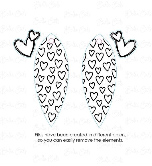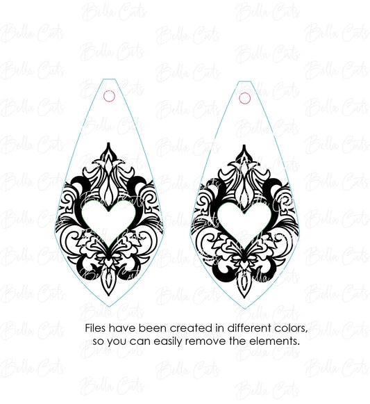 Heart Drop Laser Cut Engraved Earrings, Digital File Download, SVG DXF, Glowforge Ready, Commercial Use #254