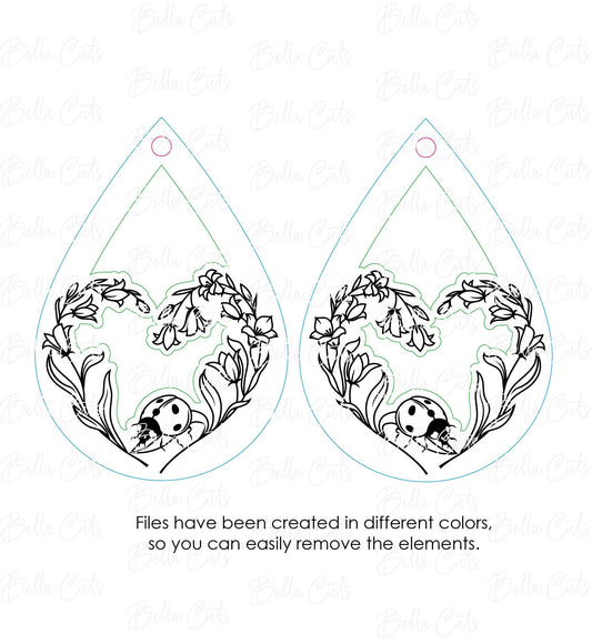 Ladybug Floral Drop Laser Cut Engraved Earrings, Digital File Download, SVG DXF, Glowforge Ready, Commercial Use #249