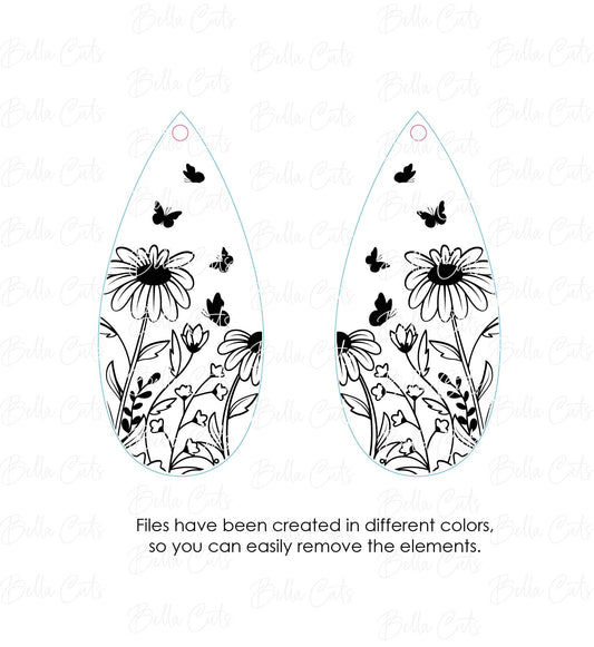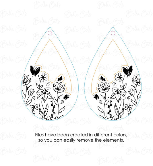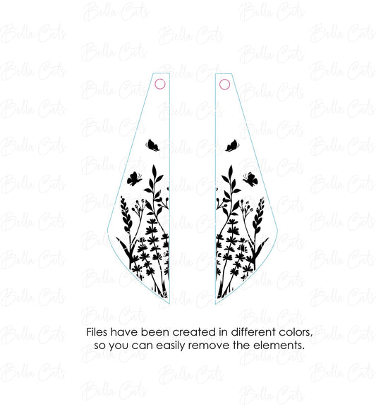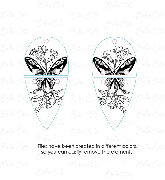 Butterfly Floral Garden laser cut dangle earring SVG file for wood or acrylic #258