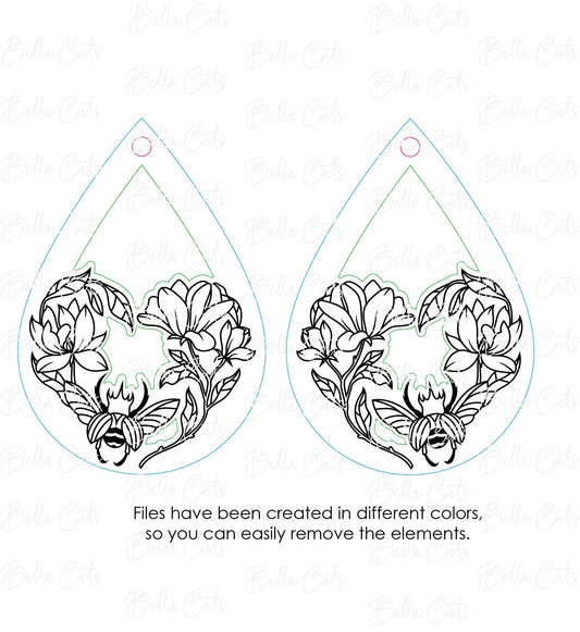 Floral Bug Beatle Laser Cut Engraved Earrings, Digital File Download, SVG DXF, Glowforge Ready, Commercial Use #250