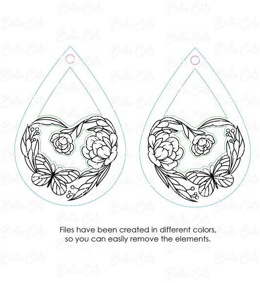 Butterfly Heart Garden laser cut dangle earring SVG file for wood or acrylic #247