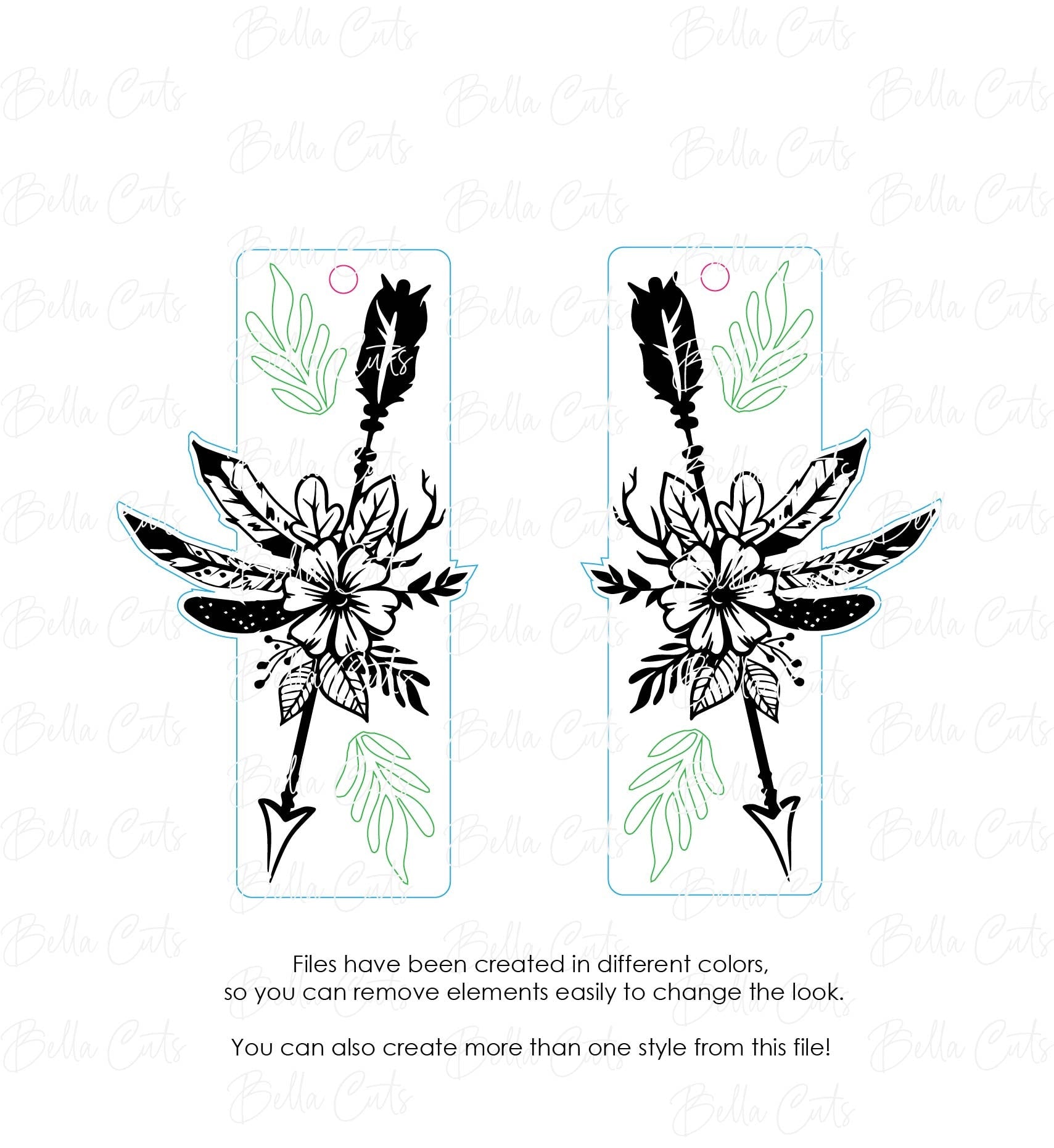 Many files have been created in different colors to easily remove elements in your laser software. This flexibility will allow you to easily create multiple variations of each earring!